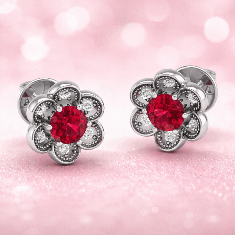 | Product Name | Floral Ruby Diamond Stud Earrings |